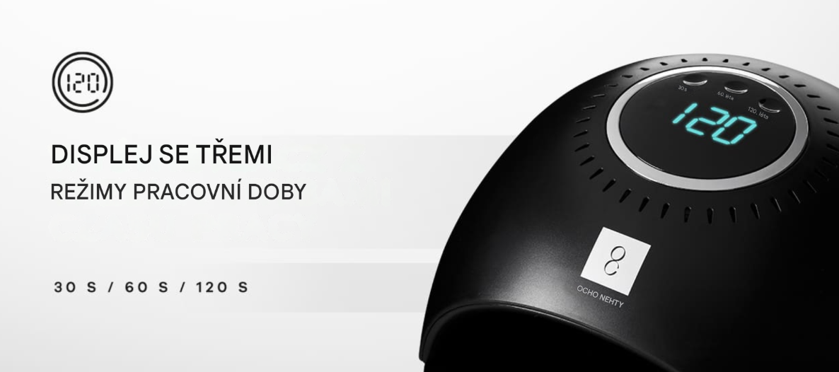 Lampa je vybavena časovačem se třemi předprogramovanými provozními dobami : 30 sekund, 60 sekund a 120 sekund („režim nízké teploty“), které se odpočítávají na přehledném digitálním displeji. Vestavěný senzor pohybu lampu automaticky zapne, když pod ni umístíte prst na ruce nebo noze, a udržuje tak maximální dobu expozice 120 sekund. Tato funkce funguje, i když není vybrán žádný režim, a na displeji se zobrazuje uplynulá doba polymerace . To vám umožňuje volně zvolit délku expozice na základě prováděné úpravy vlasů. Navíc volbou výše zmíněného „režimu nízké teploty“ se lampa během polymerace zahřívá pomaleji a postupně se zvyšuje její výkon. Tím se zabrání jakémukoli pálení nebo pocitu horka během procesu polymerace. To je nepostradatelná funkce, zejména při polymeraci gelů , které při použití jiných lamp dostupných na trhu často způsobují nepohodlí.