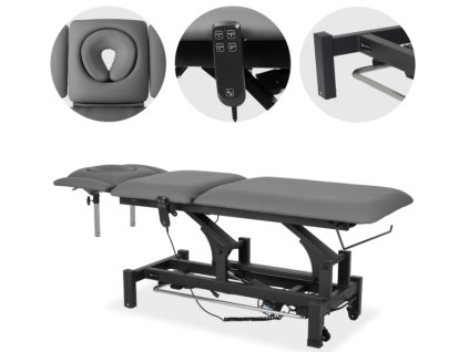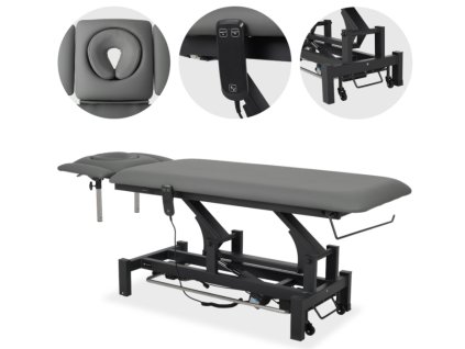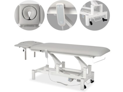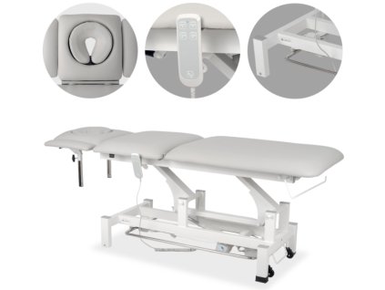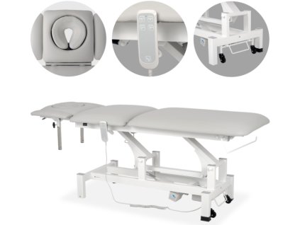 Terapeutický stůl je vybaven 5dílnou deskou, ERGO polštářem a ručním ovládáním a je určen pro použití v profesionálních masážních, fyzioterapeutických a rehabilitačních praxích.