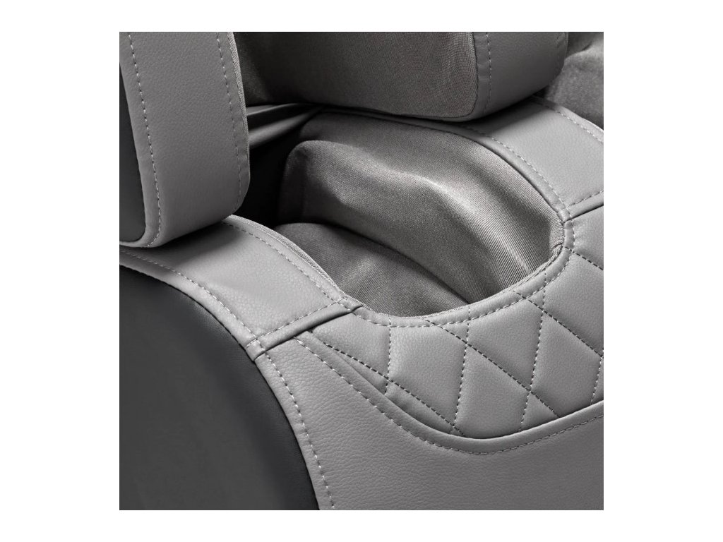 Pohodlný interiér křesla je pokryt na dotek příjemnou imitací kůže v odstínech šedé. Díky použití tohoto materiálu je vysoce odolný vůči vlhkosti a snadno se čistí. Imitace kůže v odstínech šedé na vnějších částech křesla dodává výrobku mimořádně originální a elegantní zároveň. Pečlivě zpracované lemy mu dodávají stylový vzhled a pevná konstrukce zaručuje dlouhé používání. Kompaktní model s estetickou povrchovou úpravou a klasickými barvami se perfektně hodí do každého interiéru. Masážní křeslo Sakura Classic 305 je perfektní způsob, jak relaxovat kdykoliv, zejména po náročném dni nebo náročném tréninku.