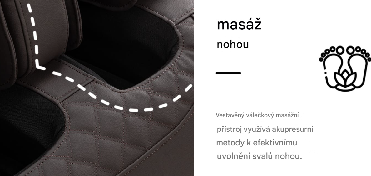 Pokročilý masážní mechanismus poskytuje účinnou a relaxační masáž svalů . Deset masážních hlavic důkladně propracovává záda a hýždě a napodobuje pohyby lidských rukou. Pomocí technik hnětení a tlaku masáž podporuje kondici těla, snižuje bolest a přináší úlevu napjatým svalům. Po každém sezení si všimnete znatelného snížení svalového napětí, vaše tělo bude příjemně uvolněné a osvěžené. Vestavěný masážní váleček na nohy navíc využívá akupresuru , která účinně uvolňuje svaly, zmírňuje únavu a zlepšuje celkovou pohodu.