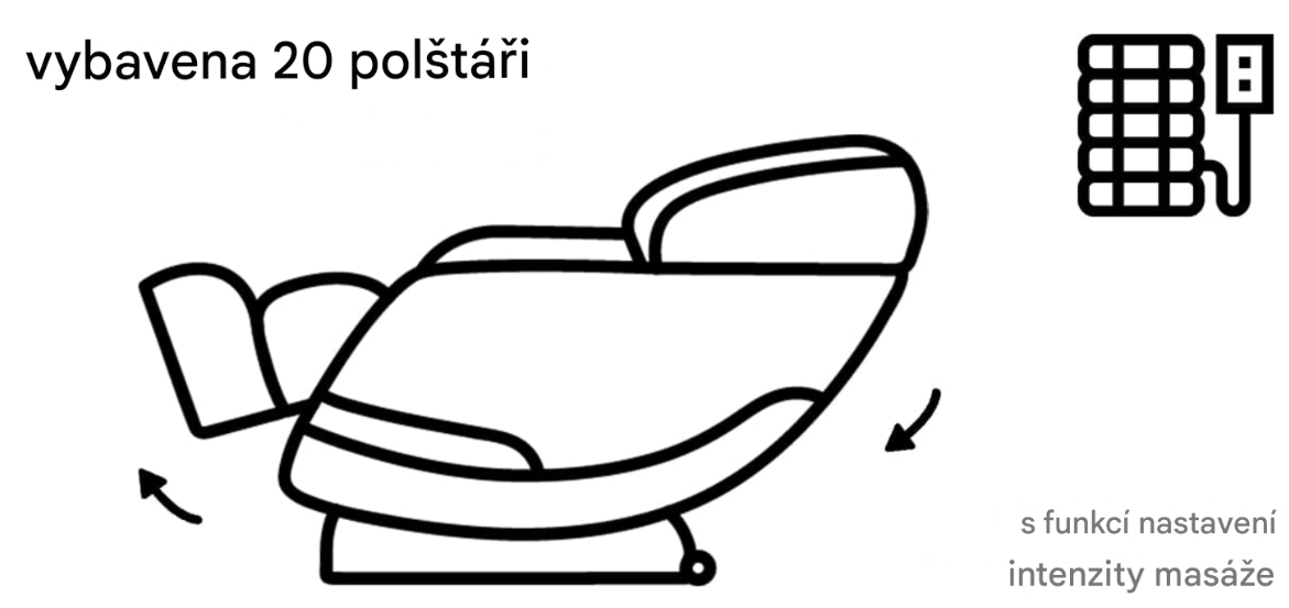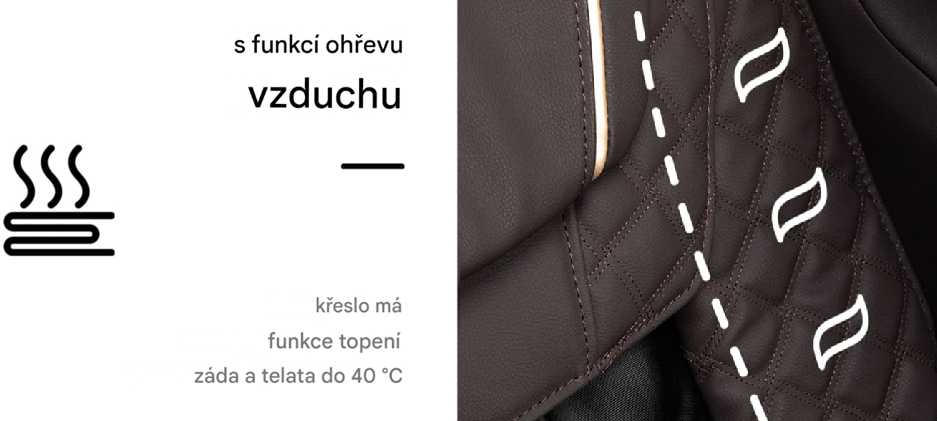 Židle je vybavena možností vyhřívání zad a lýtek , která účinně pomáhá uvolnit napětí a umocňuje zážitek z masáže. Teplo také zmírňuje bolest a stimuluje regeneraci , čímž vytváří ideální prostředí pro úplnou relaxaci po dlouhém dni. Židle je navíc vybavena nastavitelnou opěrkou nohou , která umožňuje každému uživateli – bez ohledu na výšku – najít si nejpohodlnější masážní polohu .