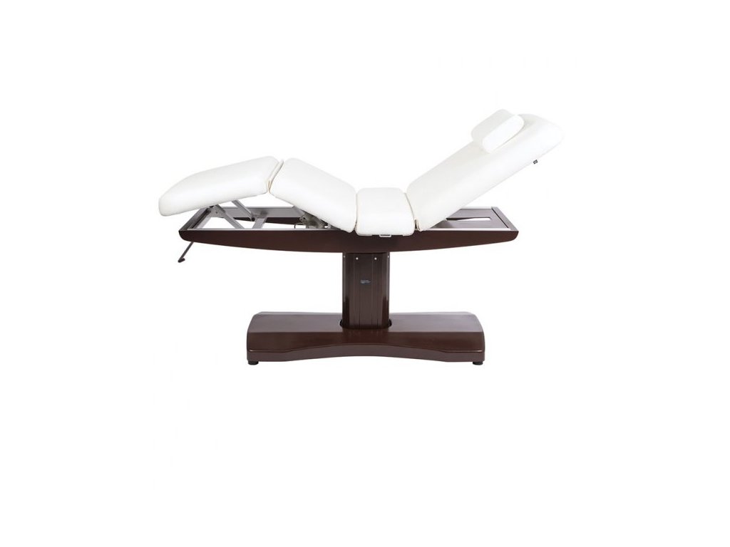 Elektrické luxusní lehátko složené ze tří částí a tří motorů. Jeho elegantní a módní design je ideální pro použití luxusních salonů. Nabízí dokonalou stabilitu a dobré postavení pro masážní účely. Jeho elektrický systém umožňuje nastavit výšku, sklon opěradla a centrální části.