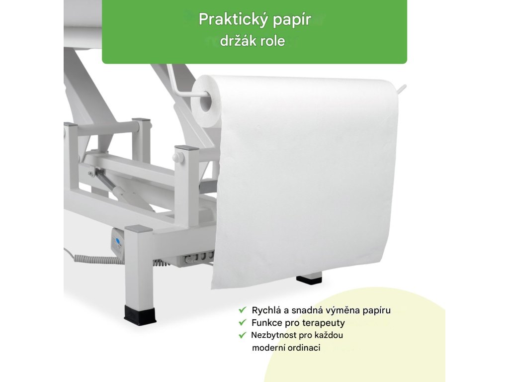 - Držák na hygienickou papírovou roli: Tato funkce vylepšuje funkčnost stolu při každodenním používání a zajišťuje, že základní příslušenství je vždy na dosah ruky. Držák je vhodný pro role široké 60 cm.