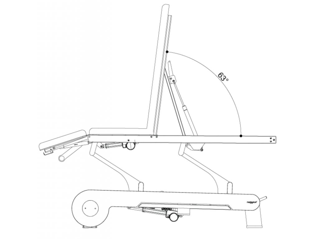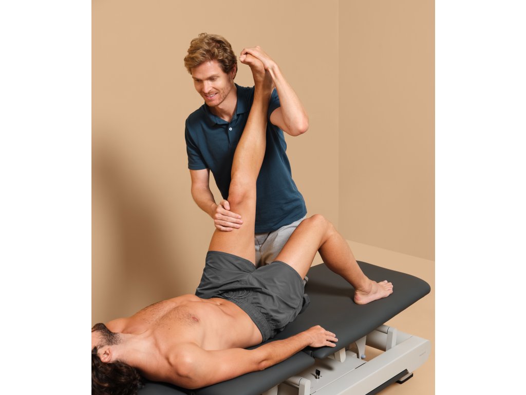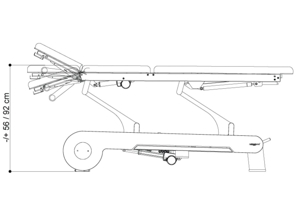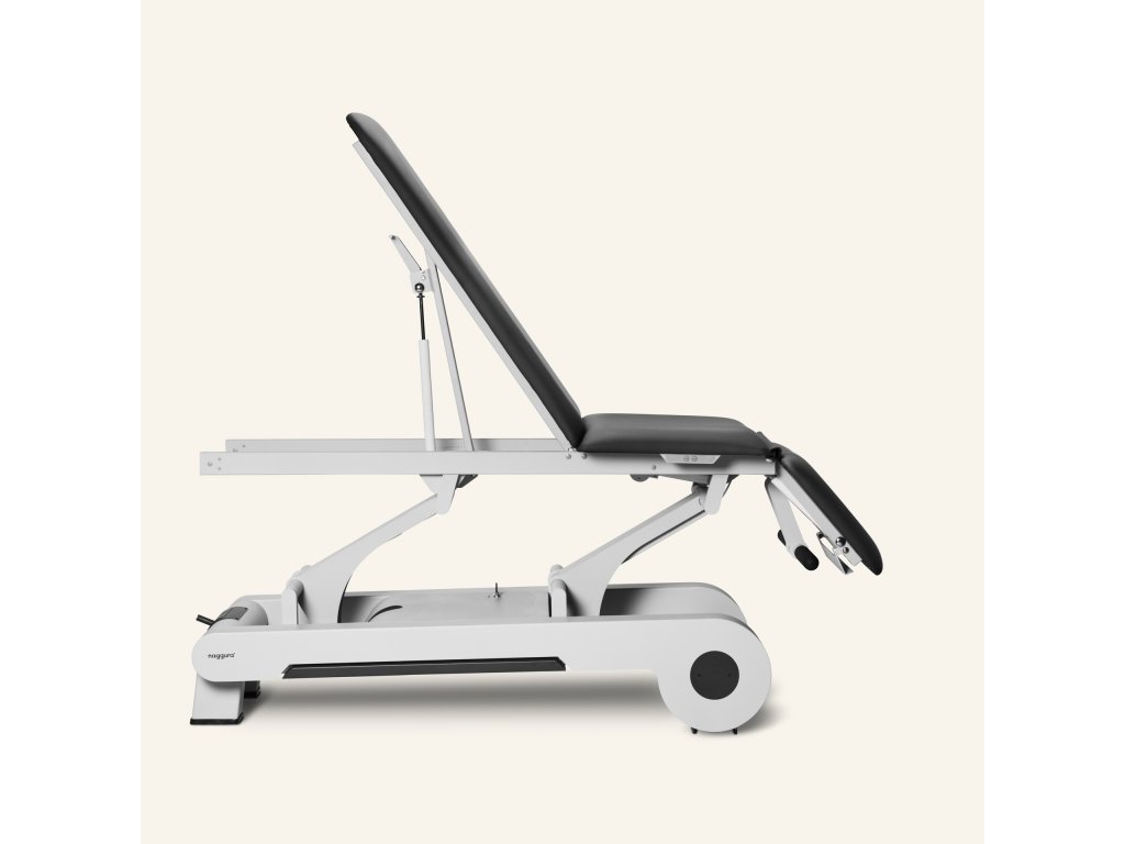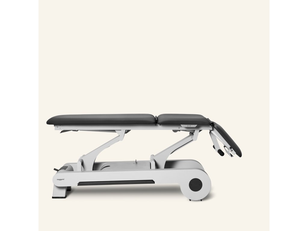 Elektrický třídílný ošetřovací stůl, který lze nastavit do více poloh, což poskytuje optimální flexibilitu a pohodlí. Stůl je vybaven 2 motory: první ovládá výšku stolu a druhý nastavuje střední část (kyfózu). 3 sekce umožňují Trendelenburgovu pozici, kyfózu pro ošetření spodní části zad a masážní křeslo. Výška stolu se ovládá obvodovým nožním spínačem umístěným u paty stolu a střední část se nastavuje tlačítkovou skříňkou umístěnou na jedné straně rámu stolu.