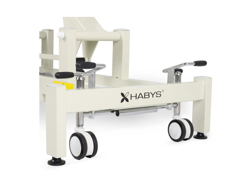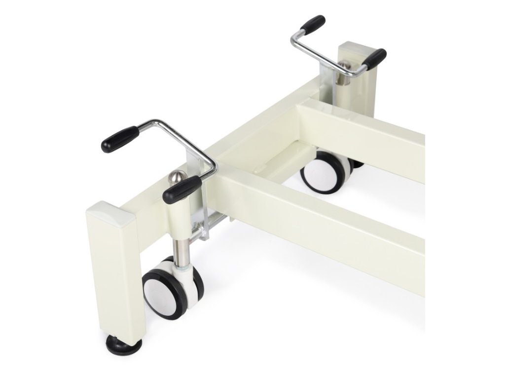 - Mobilita: Stůl je vybaven čtyřmi otočnými kolečky lékařské kvality a čtyřmi velkými vyrovnávacími nožičkami, které usnadňují přepravu a zajišťují stabilitu na nerovném povrchu.