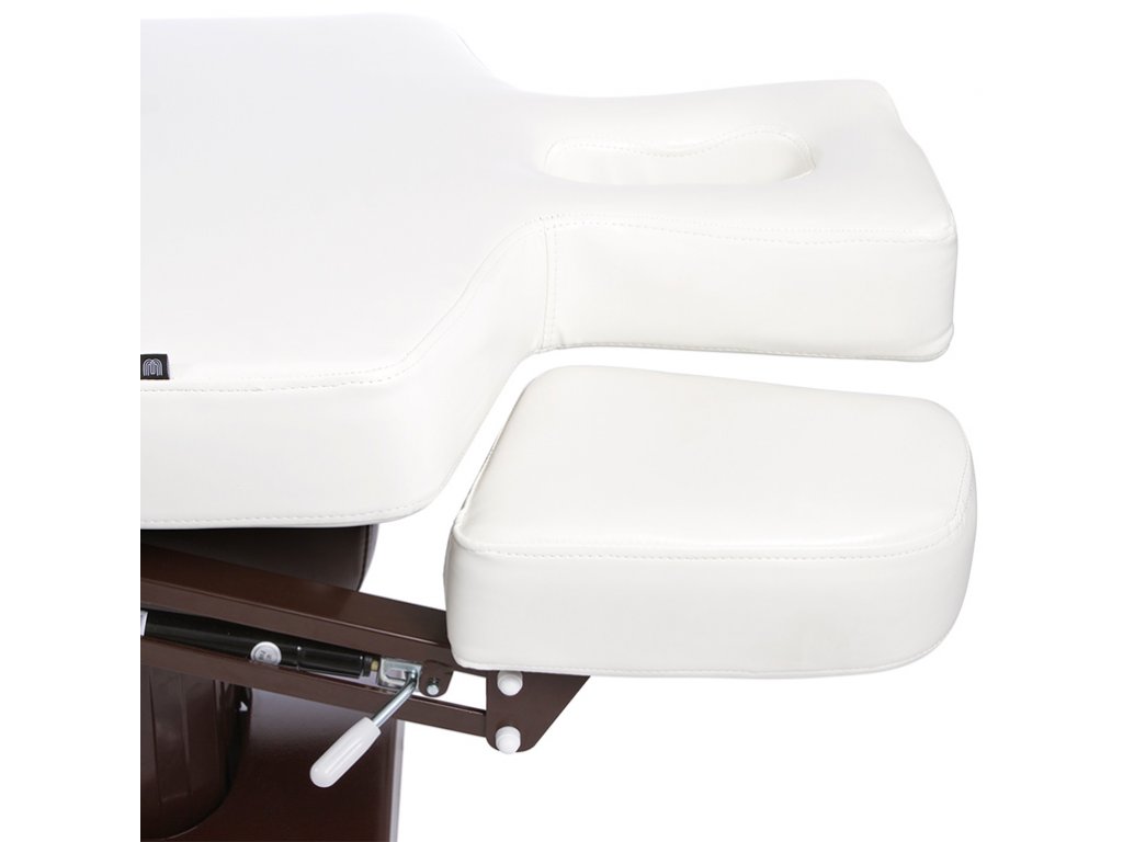 3 motorové SPA lůžko s nastavitelnou výšku, opěrkou a sklonem podnožky. Bílé čalounění s kvalitním a pohodlným polstrováním. Trojdílná matrace. Nastavitelné opěrky rukou a hlavy...