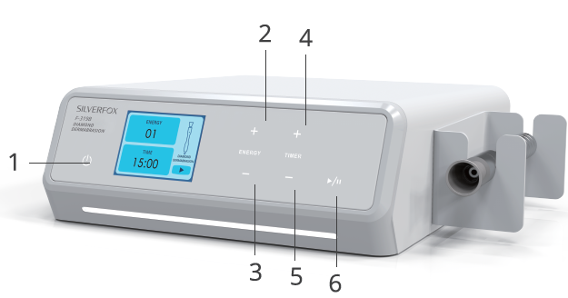 6. Po skončení ošetření stiskněte vypínač a zařízení vypněte. V tomto okamžiku se vypínač rozsvítí červeně. Po odpojení zástrčky ze zásuvky očistěte sací tyčinku a mikrokrystalickou brusnou hlavu 75% alkoholem a uložte je na suchém místě
