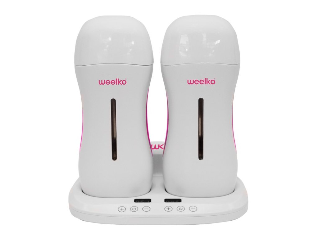 Dvojitý ohřívač vosku. Pro 2 roll-on kazety. Digitální základna, ve které jsou umístěna 2 topná tělesa se samostatným a nezávislým ovládáním teploty. Stejný moderní design jako Onewax.