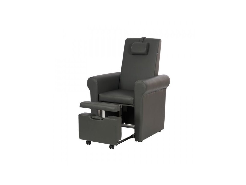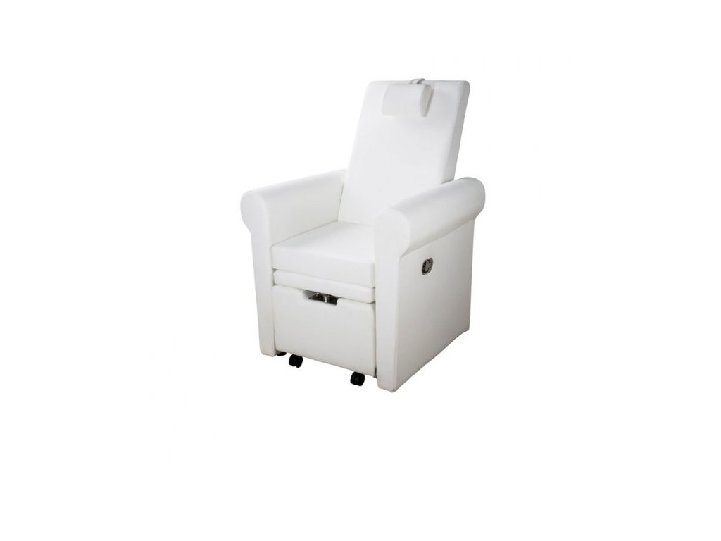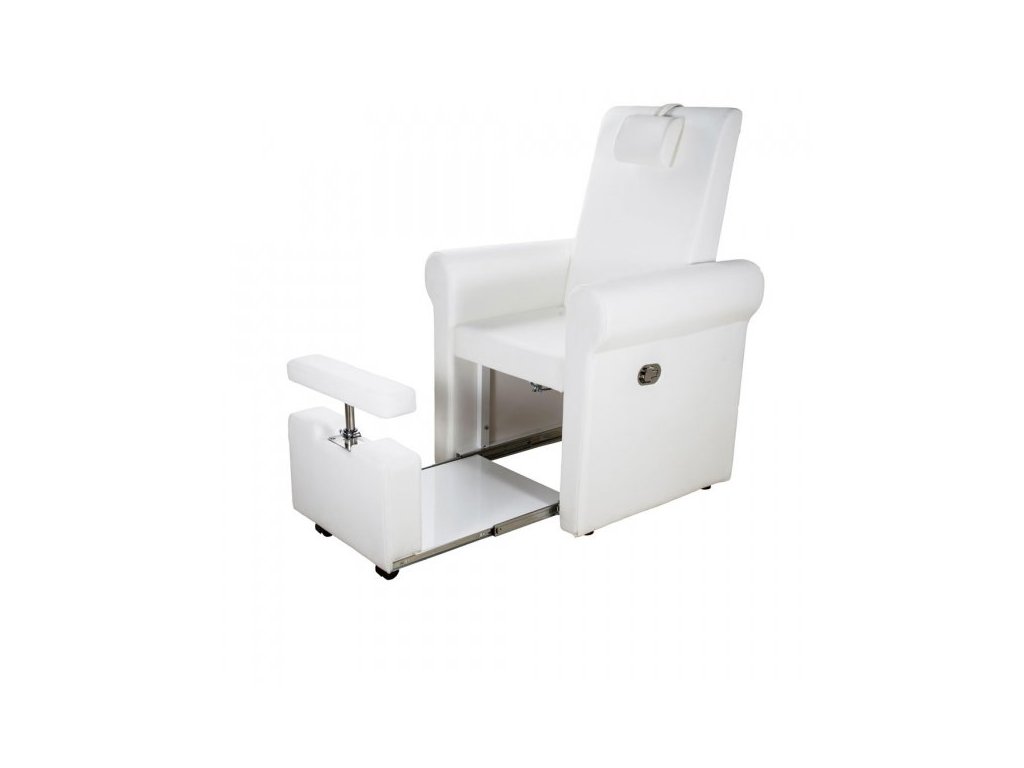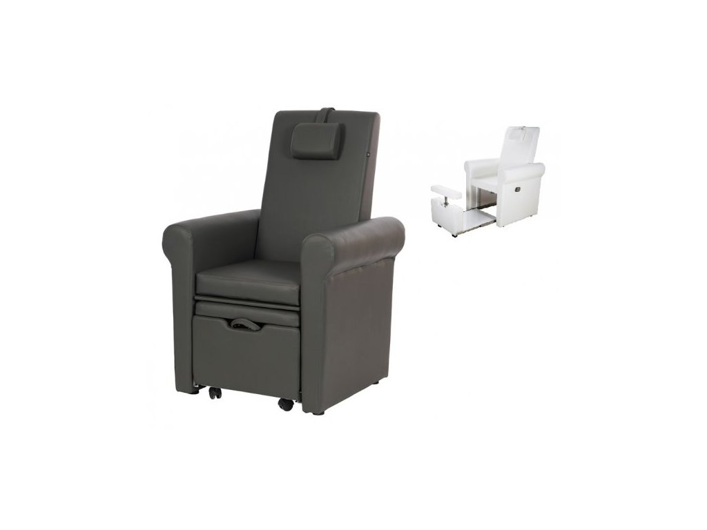 Pohodlné a elegantní křeslo pedikérské SPA s vysoce kvalitní čalounění šedé nebo bílé PU. Možnost nastavení sklonu zad. Je vybaveno výsuvnou opěrkou nohy.