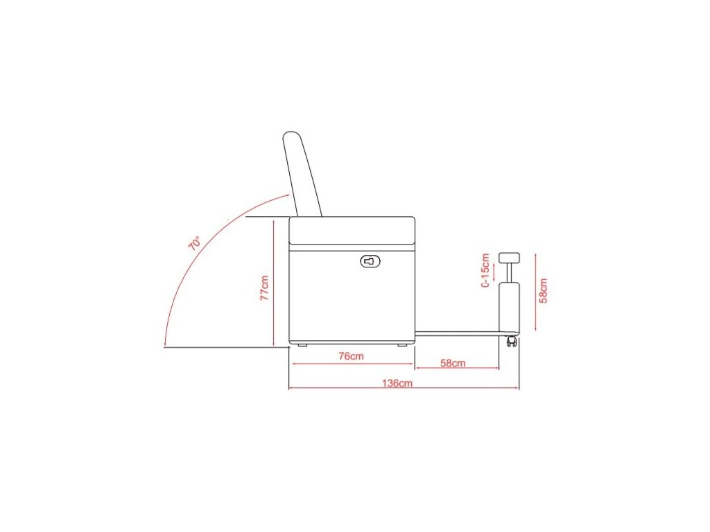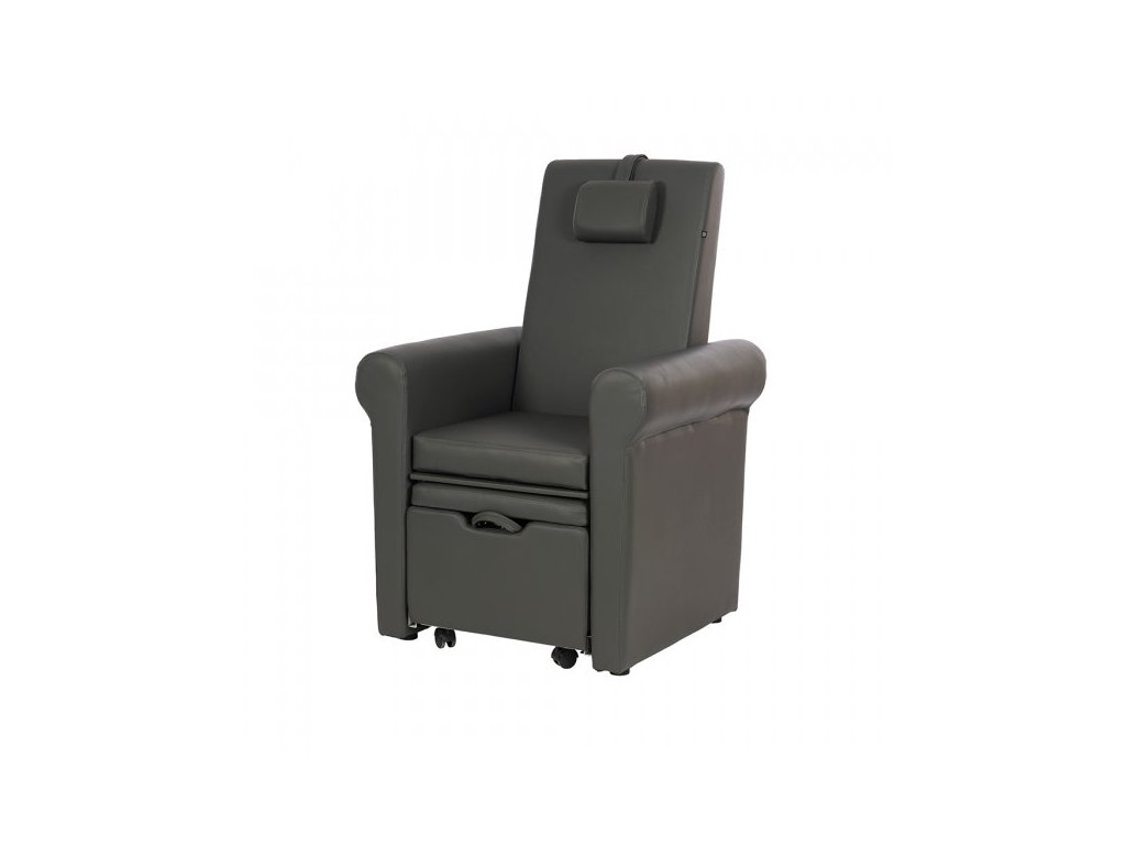 Elektrické pedikérské křeslo s 3 motory které ovládají výšku křesla, zádové opěradlo a sklon sedáku. Podnožky se ovládají manuálně.