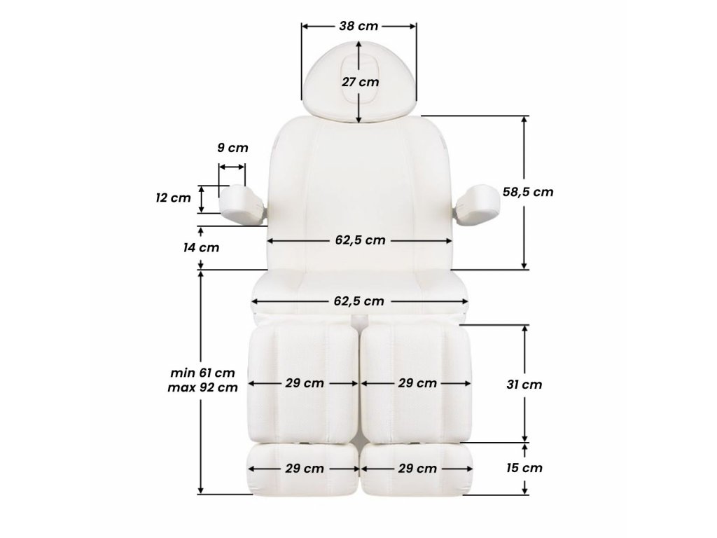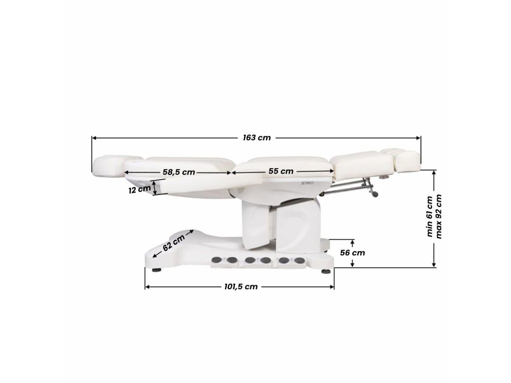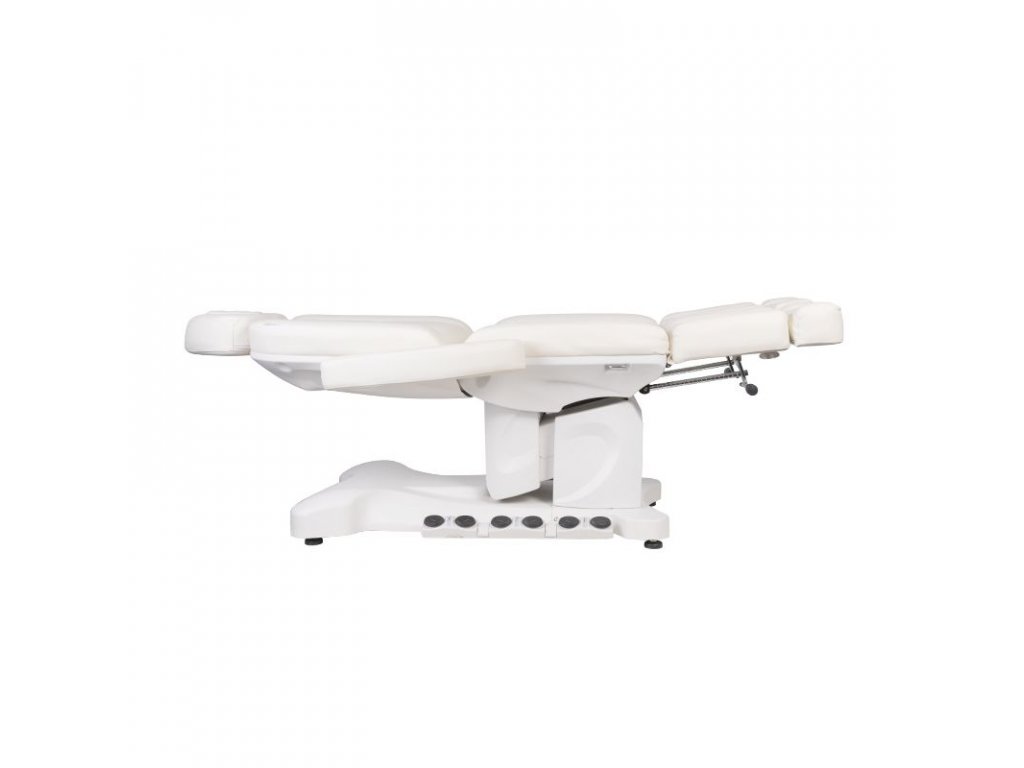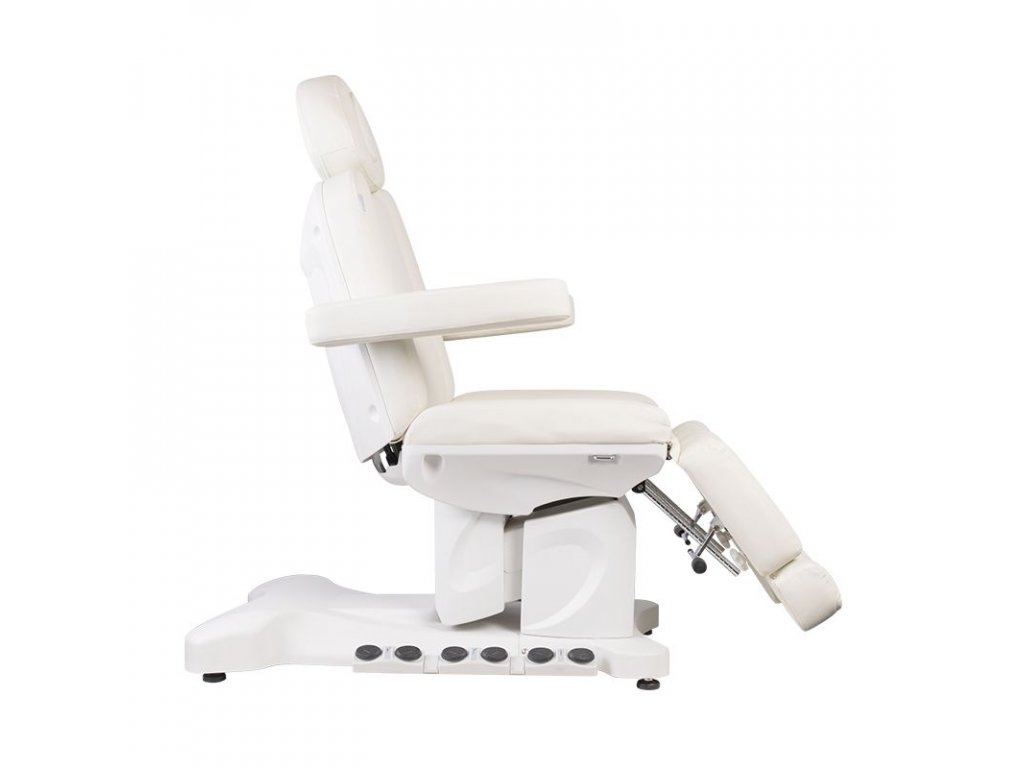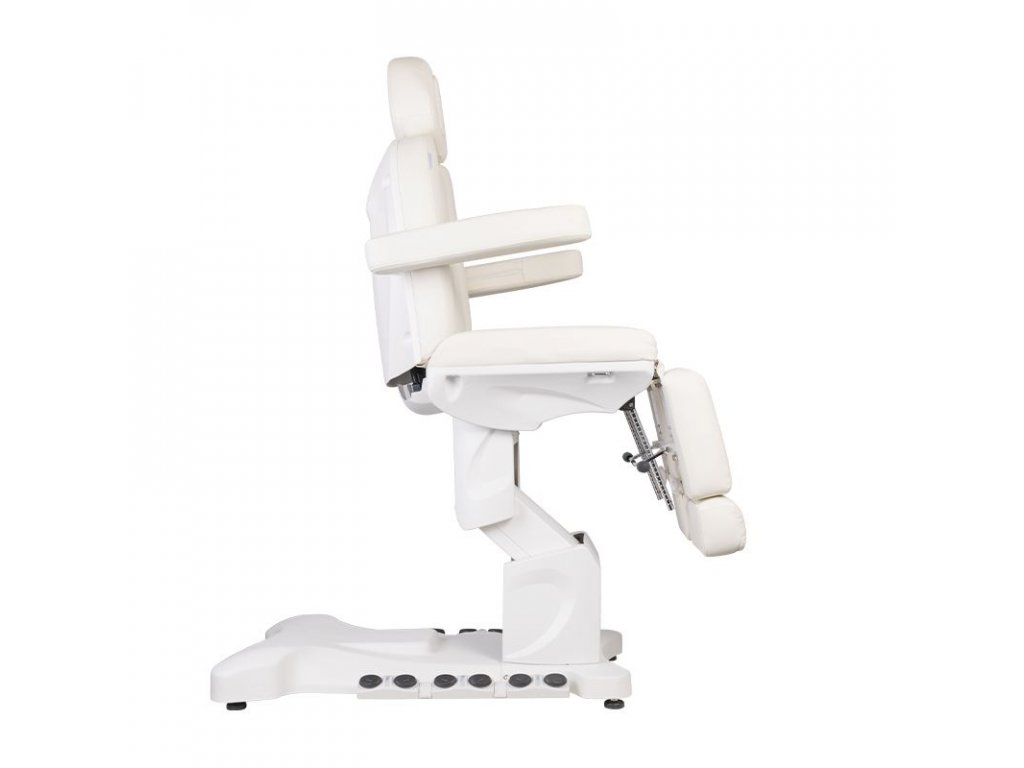 Jedinečné elektrické pedikérské křeslo ideální pro podiatrické salony a SPA salony. Díky nezávislým pohonům umožňuje nastavit křeslo ve 3 rovinách pomocí dálkového ovladače a nožních spínačů, což dává možnost pohodlné pedikúry, ošetření obličeje a těla. Pomocí dálkového ovladače můžeme použít naprogramované nastavení a spustit funkci HOT, tedy topení. Křeslo využívá perforované čalounění jedinečné u jiných křesel a barevné LED podsvícení podnože.