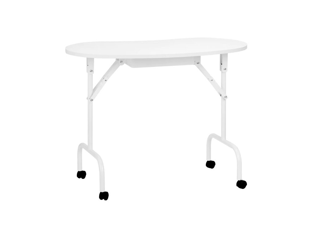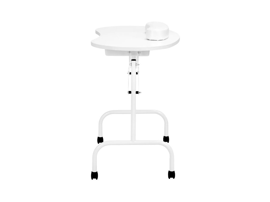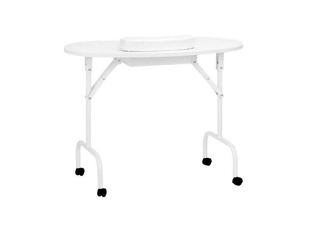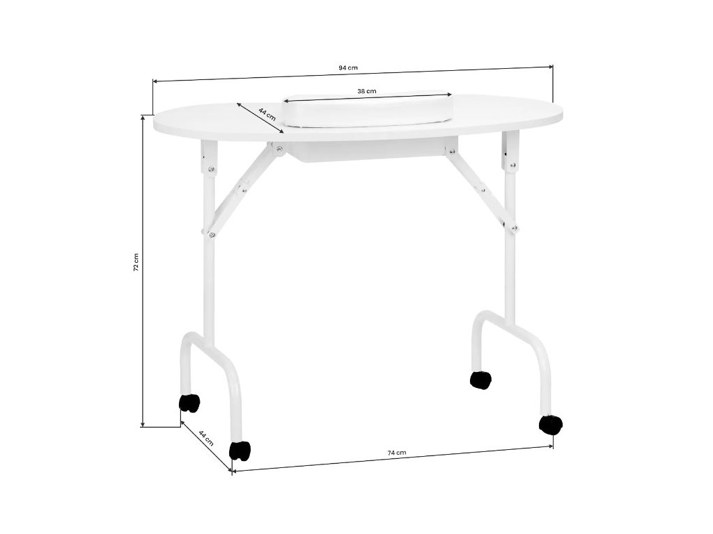 Kompaktní rozměry složeného stolu umožňují snadné skladování a pohodlnou přepravu , což je klíčové pro mobilní služby. Pod deskou stolu se nachází přihrádka pro uložení všech nezbytných produktů a příslušenství. Tato zásuvka poskytuje snadný přístup k základním nástrojům . Manikúrní polštářek zefektivňuje ošetření tím, že umožňuje klientovi zaujmout vhodnou a pohodlnou polohu . Stůl se snadno skládá, což výrazně zlepšuje pohodlí uživatele. Součástí balení je odolná taška, která je ideální pro přepravu nábytku, usnadňuje jeho přenášení a chrání jej před poškozením.