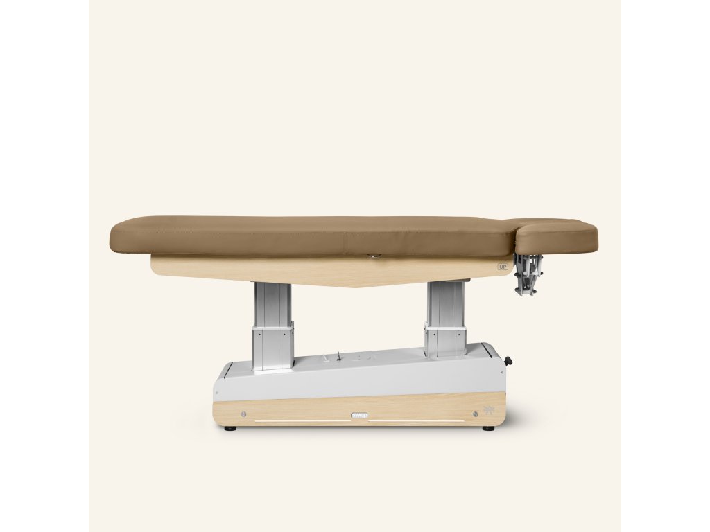 Tento elektrický systém umožňuje pohodlné a přesné nastavení výšky jednoduše pomoci ručního ovladače. Elektromotor se postará o nezbytná nastavení pro automatické zvednutí nebo snížení výšky stolu, což eliminuje potřebu fyzické námahy na straně profesionála.