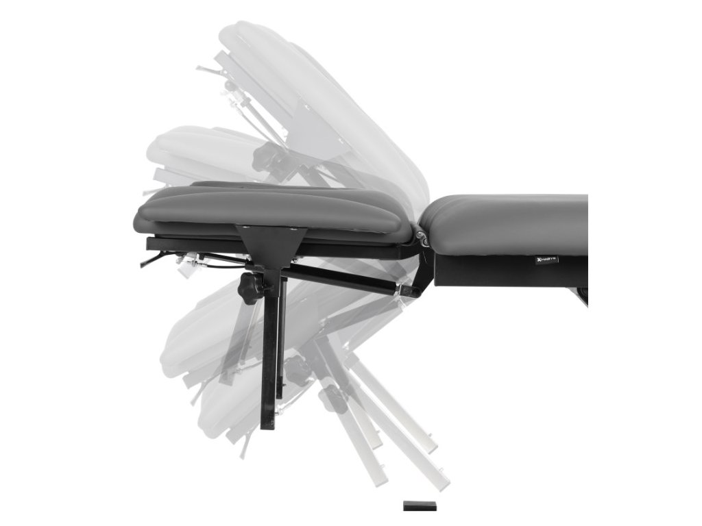 - 4-segmentová deska stolu: Deska stolu o rozměrech 192 cm x 68 cm se skládá ze 4 segmentů, které lze snadno přizpůsobit individuálním potřebám pacienta. Nastavení opěrky hlavy (od -40° do +40°) a loketních opěrek (15 cm) zajišťuje přesné nastavení polohy pacienta, což je zásadní při manuální terapii a masáži.