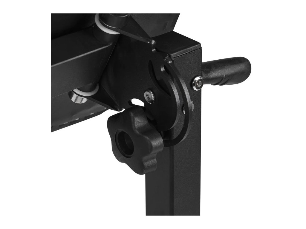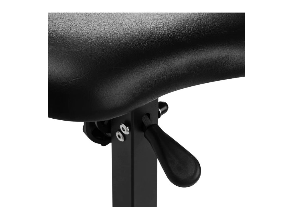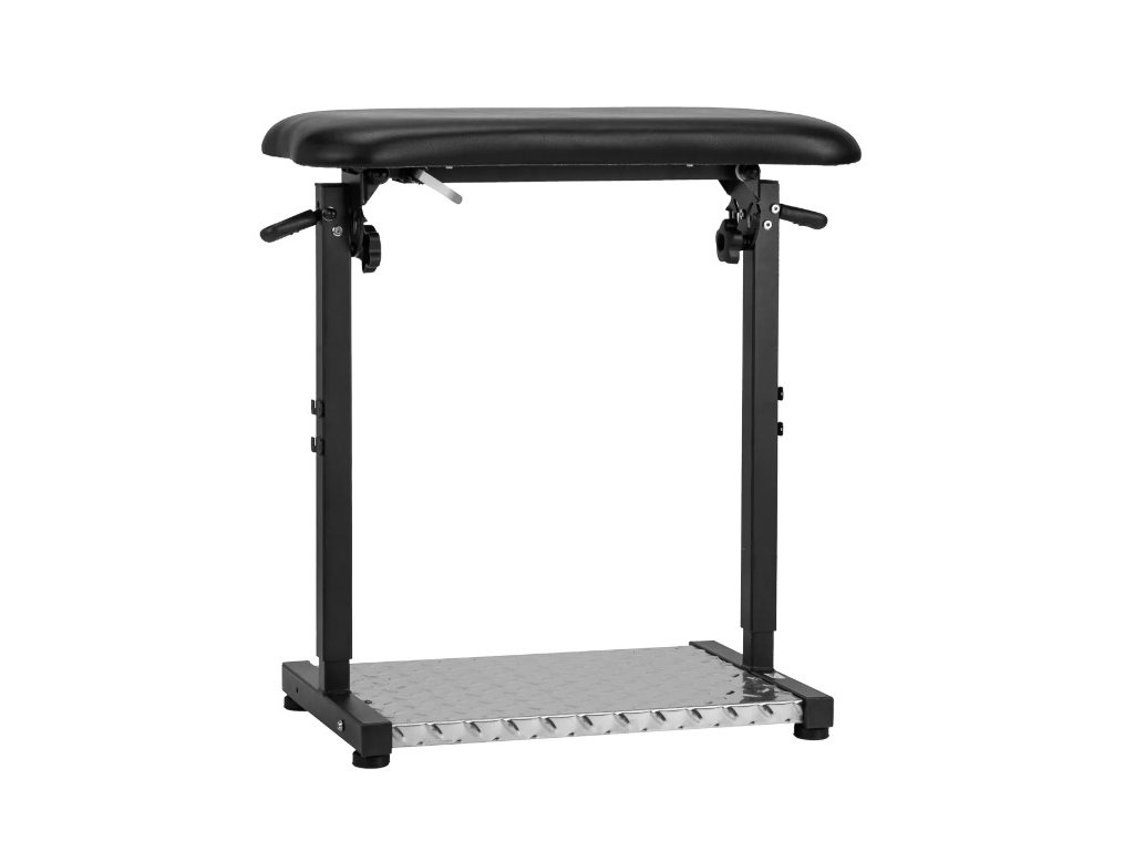 Výšku loketní opěrky lze nastavit v rozmezí 69-95 cm, což umožňuje její přizpůsobení potřebám klientů a zaručuje stabilní oporu během sezení. Nastavení sklonu loketní opěrky až do 180° (90° v každém směru), možnost nezávislého nastavení výšky obou stran díky zabudovaným plynovým zvedákům umožňují optimální polohování podpěry. Široká škála nastavení výrazně zvyšuje ergonomii práce a komfort používání. Kovová opěrka nohou usnadňuje tatérovi nebo klientovi zaujmout pohodlnou polohu. Kromě toho možnost montáže přihrádky na příslušenství na rám a držáku na rukavice a ručník zvyšuje funkčnost tohoto modelu.