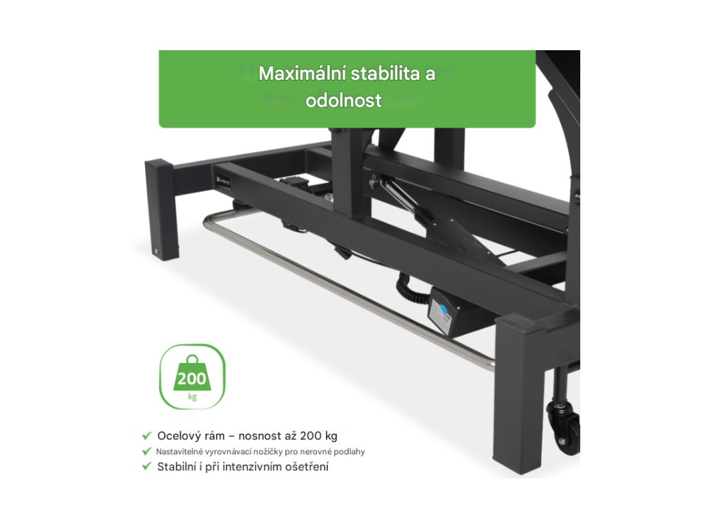 - Odolná konstrukce rámu: Zesílený rám zabraňuje vibracím a posunům během ošetření.