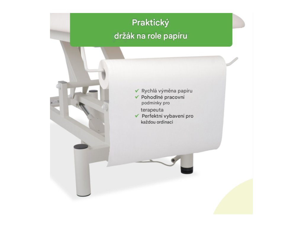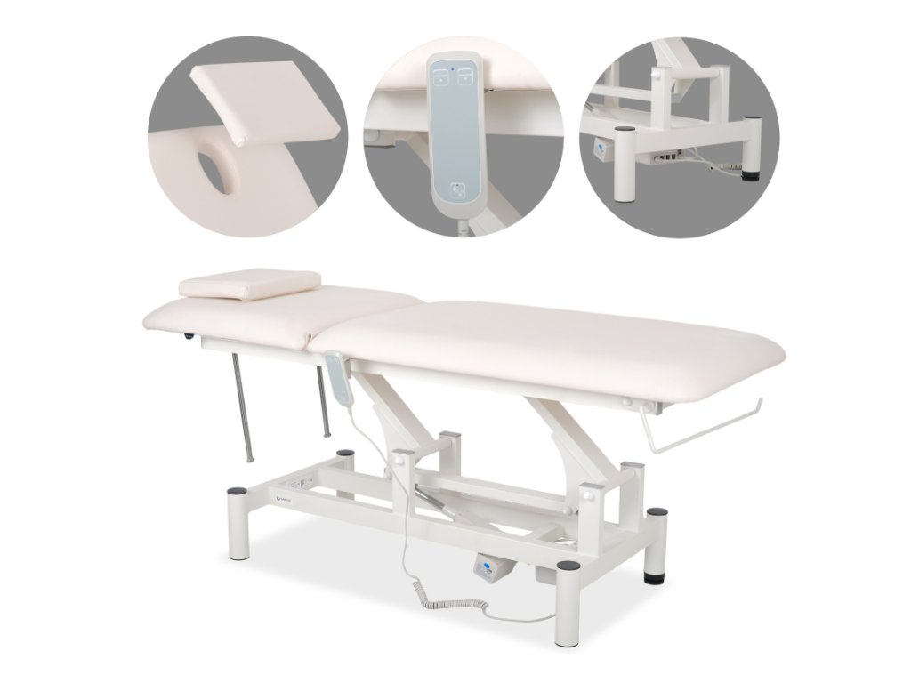 Terapeutický stůl Optima, elektrické nastavení výšky s ručním dálkovým ovládáním – Satin Comfort k701 bílá