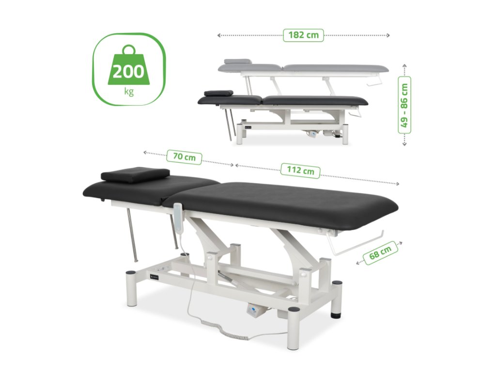 Terapeutický stůl Optima, elektrické nastavení výšky s ručním dálkovým ovládáním – Satin Comfort k715 černá