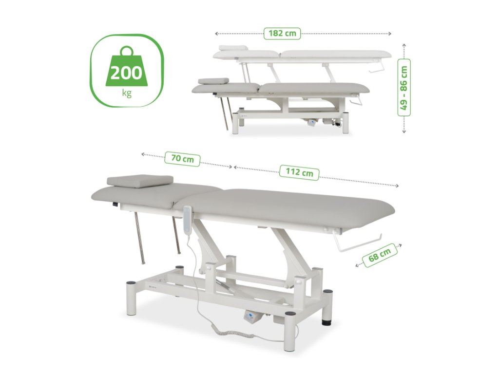 Ideální pro všechny masážní techniky, včetně klasické, sportovní, relaxační a terapeutické masáže. Ergonomický design stolu a nastavitelné sekce umožňují plnou kontrolu nad polohováním pacienta, což zvyšuje účinnost terapeutických, relaxačních a kosmetických procedur. -
