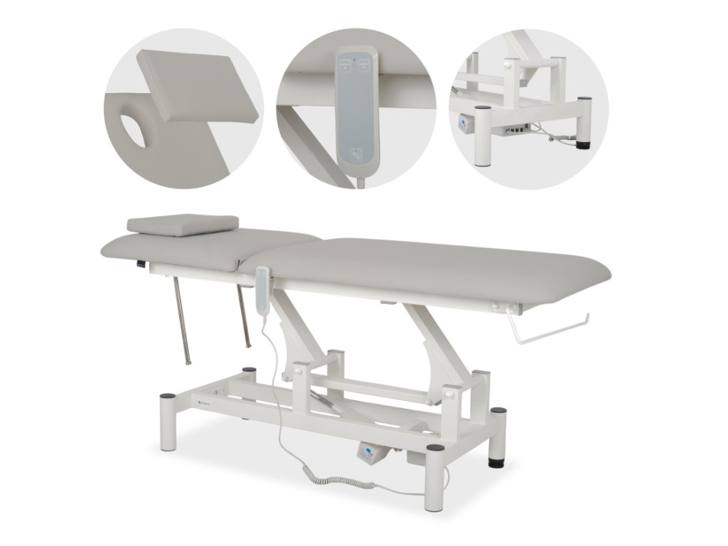 Terapeutický stůl Optima, elektrické nastavení výšky s ručním dálkovým ovládáním – Satin Comfort k729 šedý